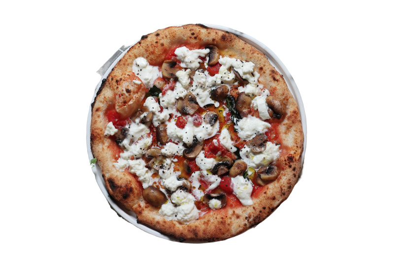鋪上滿滿莫札瑞拉起司以及高級松露醬,再放上香腸肉和鮮美野菇,不一樣的義式美味。